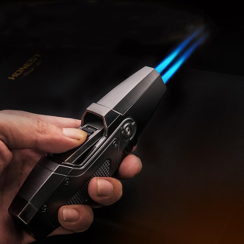 Generic - ولاعة غاز بوتان معدنية مبتكرة من اونست، 2 شعلة لهب أزرق، مقاومة للرياح للاستخدام في الخارج في الهواء الطلق للمطبخ التربو والشواء، أداة لحام بالشعلة