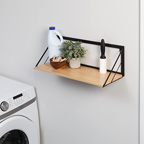 Honey-Can-Do - رف خشب متعدد الأغراض قابل للتثبيت على الحائط مع حامل معدن من هوني-كان-دو، خشب قيقب طبيعي، مقاس 61 سم، موديل SHF-09786