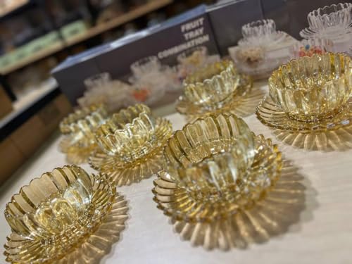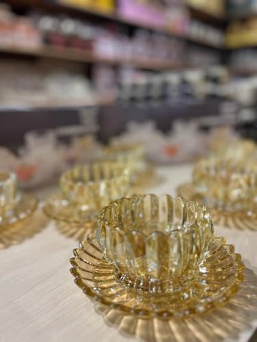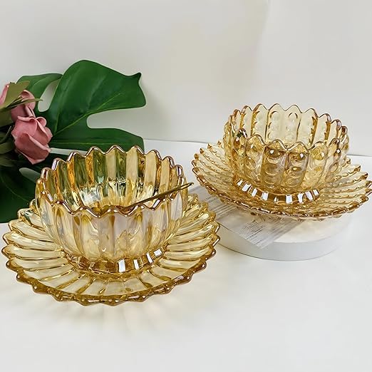 - طقم كريستال فاخر: يتكون من 12 قطعة شاملة 6 أطباق و6 بولات مصنوعة من الكريستال عالي الجودة بلون ذهبي أنيق