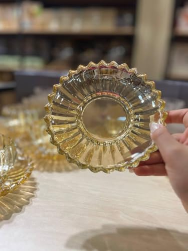 Generic - طقم أطباق وأوعية كريستال عسلي، 12 قطعة، 6 أوعية و6 أطباق، تصميم زهري كلاسيكي