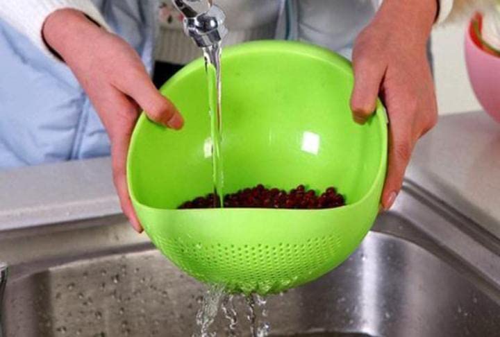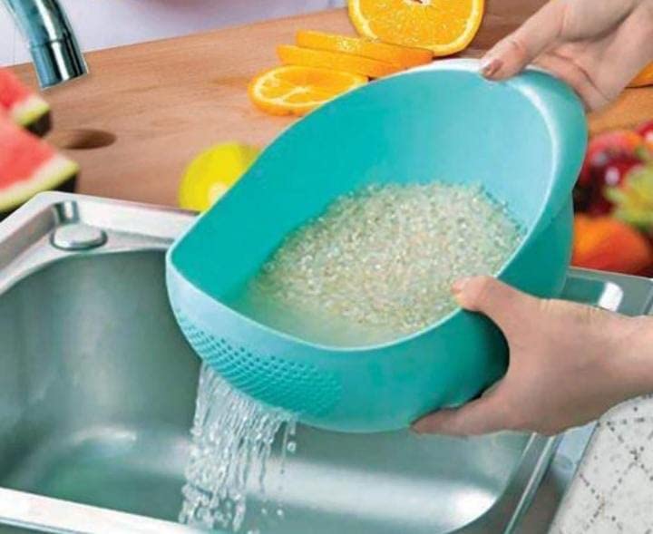 - مصفاة لغسل الفواكه والخضروات ووعاء غسيل الأرز بقاعدة صلبة.