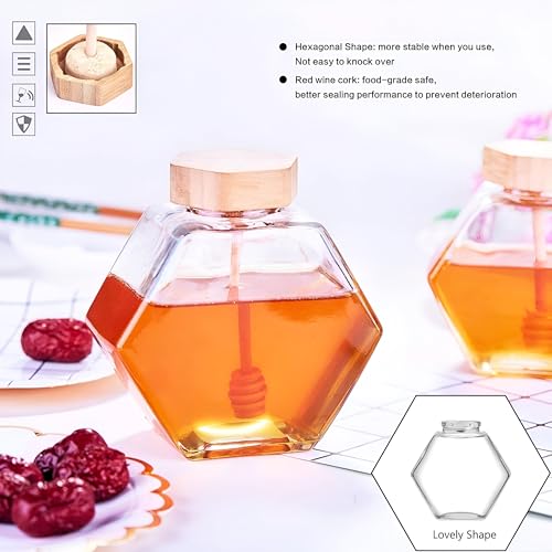 - ✔ برطمان عملي - يتميز البرطمان بغطاء من الفلين الأحمر يوفر أداءً ممتازًا للإغلاق، مما يجعله مثاليًا للحفاظ على العسل الطبيعي أو الشراب في ظروف مثالية. شكله السداسي الأنيق لا يبدو رائعًا في مطبخك فحسب، بل إنه يخدم أيضًا بشكل جيد على طاولة الطعام، مما يزيل القلق بشأن الانسكابات العرضية.