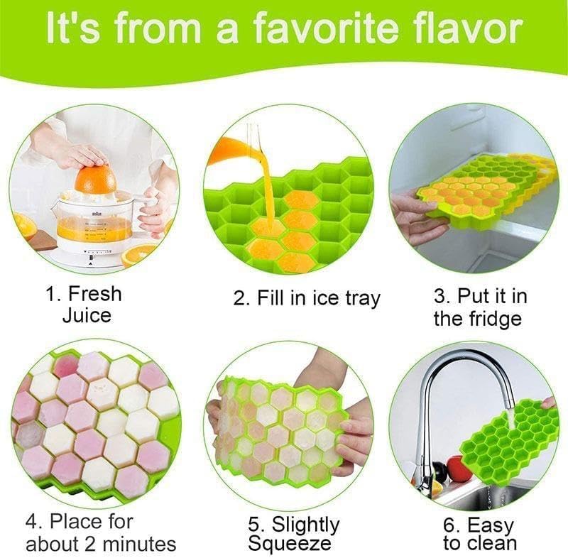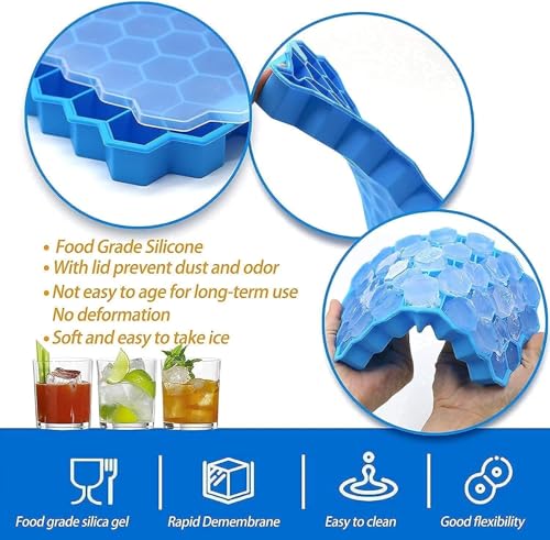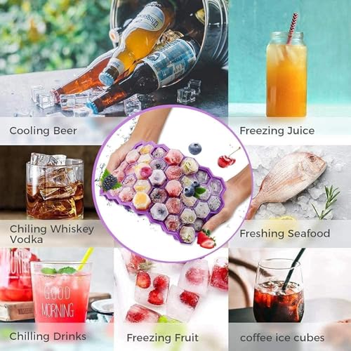 - التصميم: قوالب مكعبات الثلج على شكل قرص العسل مع أغطية آمنة، تتميز كل صينية بمساحات تخزين سداسية متعددة للثلج بشكل موحد