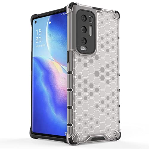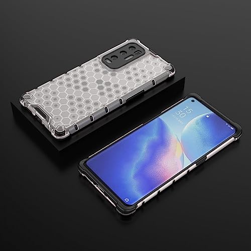 Generic - جراب حماية مضاد للصدمات بتصميم شكل قرص العسل بظهر شفاف مع حواف سوداء وتصميم متين مضاد للاصفرار لموبايل أوبو فايند X3 نيو شبكة الجيل الخامس 5G / اوبو رينو 5 برو بلس 5G
