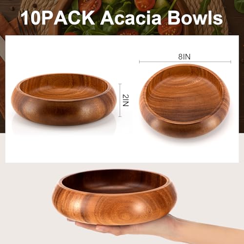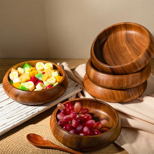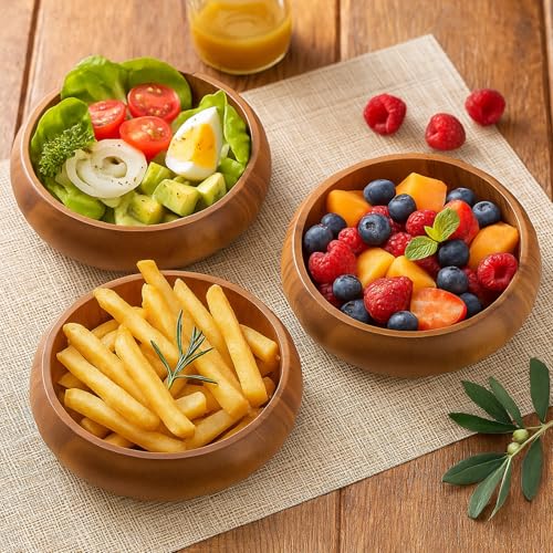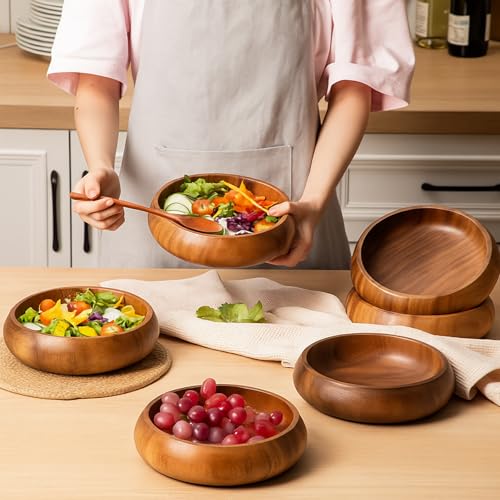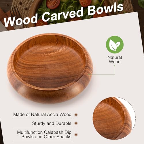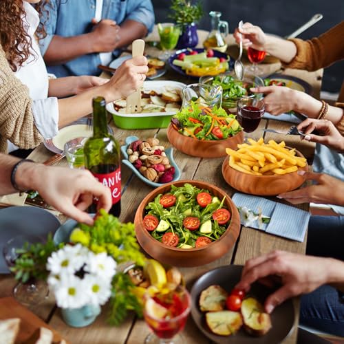 Honeydak - هوني داك 6 قطع من اوعية خشب اكاسيا 7.87 انش، اوعية سلطة كالاباش دائرية منحوتة يدويا لتقديم الفشار والمعكرونة والحلوى وجوز الهند والمكسرات والصلصة والمقبلات
