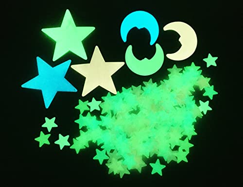 HoneyToys - 200 قطعة 1.2 انش نجوم مضيئة تتوهج في الظلام ملصقات الحائط البلاستيكية الفلورسنت الليلية لسقف المنزل والجدار وغرفة النوم جديد متعدد الالوان .