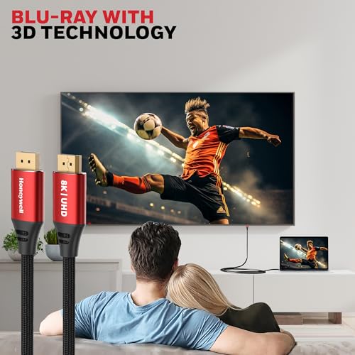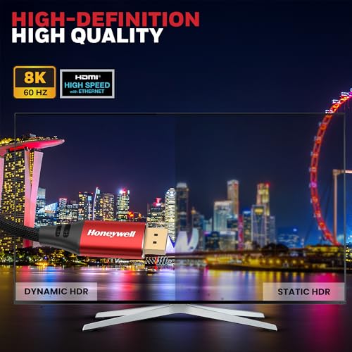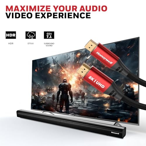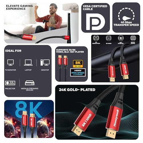 Honeywell - هوني ويل كيبل منفذ عرض الى 2.0 دقة UHD 8K@60Hz سرعة نقل 40 GBPS ذكر 2 متر جهاز العرض شاشة تلفزيون .