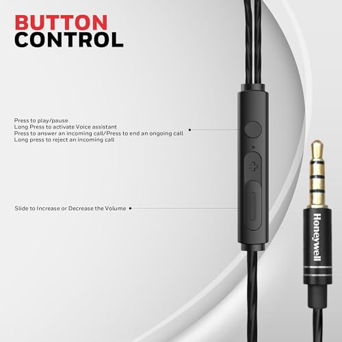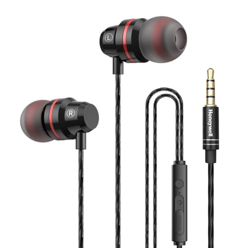 Honeywell - سماعات أذن سلكية موكسي V50 من هوني ويل مع ميكروفون مدمج بخاصية إلغاء الضوضاء السلبية صوت جهوري عميق وصوت واضح UHD منفذ Aux 3.5 ملم مساعد صوتي بطول 1.2 متر لون أسود