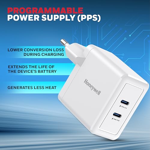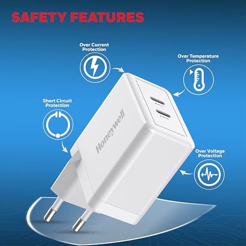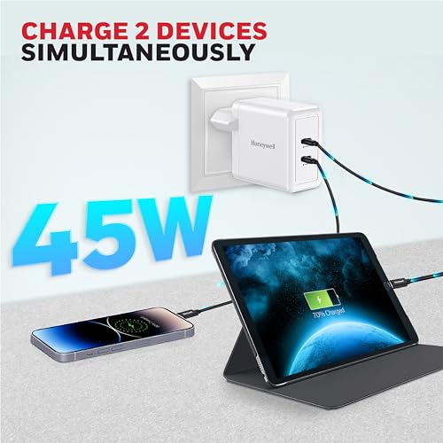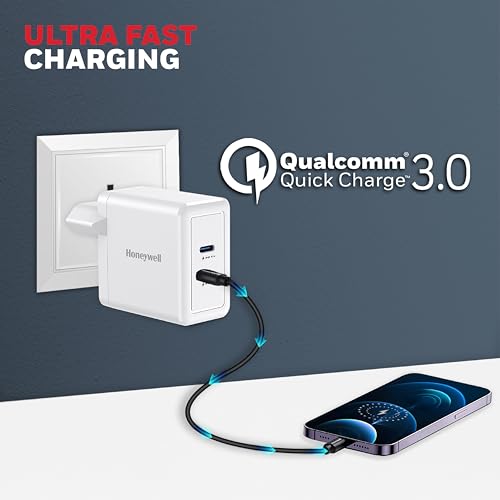 Honeywell - شاحن من هَنيويل بتقنية USB، متوافق مع الأجهزة اللوحية والهواتف الخلوية والساعات الذكية، بمنفذين