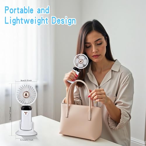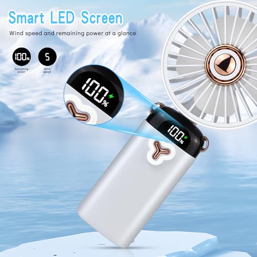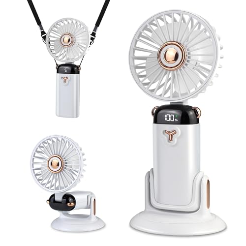 HONEYYEAR - مروحة محمولة متعددة الاستخدامات 4 في 1 قابلة لاعادة الشحن بمنفذ USB من هوني يير - سرعات قابلة للتعديل، شاشة رقمية وقدرة تثبيت على الحائط باللون الابيض اللؤلؤي