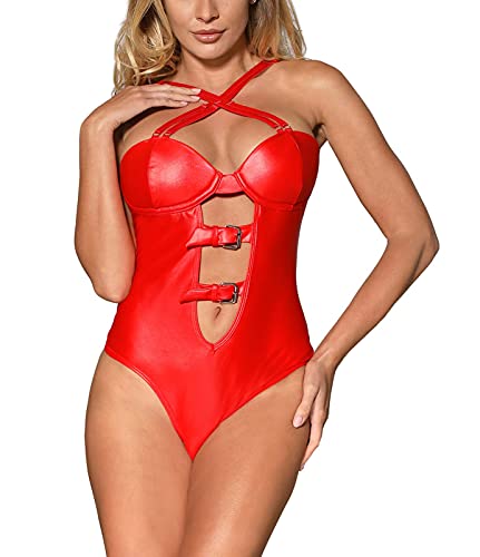 HONGMEI - سالوبيت ويي لوك نسائية من هونجمي، مصنوع من الجلد برقبة برباط وفتحة عن الصدر وسوستة خلفي