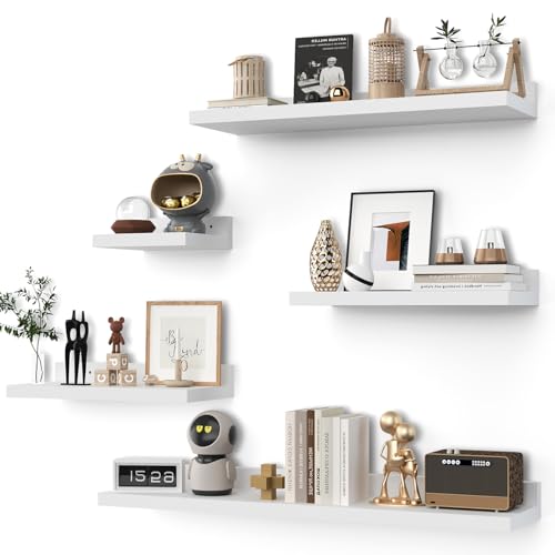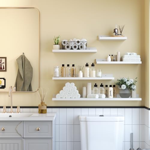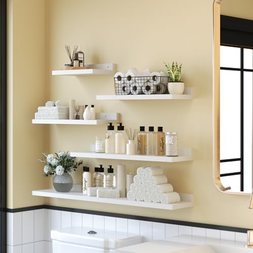 Hongsane - ارفف عائمة للحائط من هونجسين، ارفف عائمة بيضاء للحمام من الخشب الطبيعي مقاس 5.30 انش، رف كتب يثبت على الحائط، رفوف عرض ديكور المنزل، ارفف تخزين لغرفة المعيشة وغرفة النوم والمطبخ
