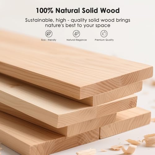 - خشب الصنوبر الطبيعي الصلب: في حين أن معظم الأرفف العائمة تقطع الزوايا بلوح حبيبي أو خشب هندسي، فإن أرففنا تقف: مصنوعة من خشب الصنوبر الصلب بنسبة 100%، وهو خيار يرفع من المتانة والسحر. إنها بطبيعتها أكثر صديقة للبيئة، وخالية من المواد اللاصقة الضارة والمواد الكيميائية الموجودة غالبًا في الخشب الهندسي. إنه خيار يمنحك شعورًا جيدًا لمنزلك