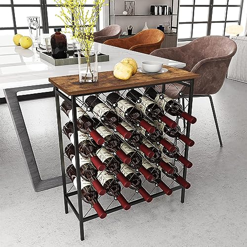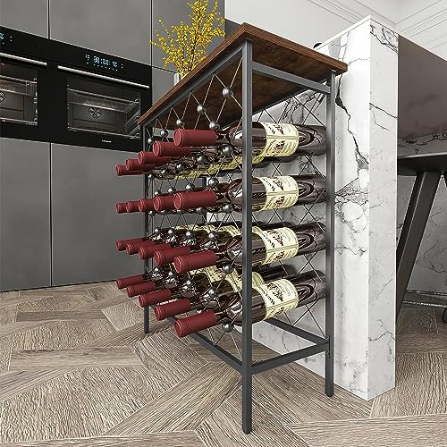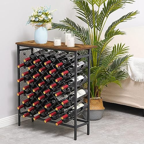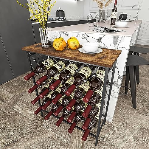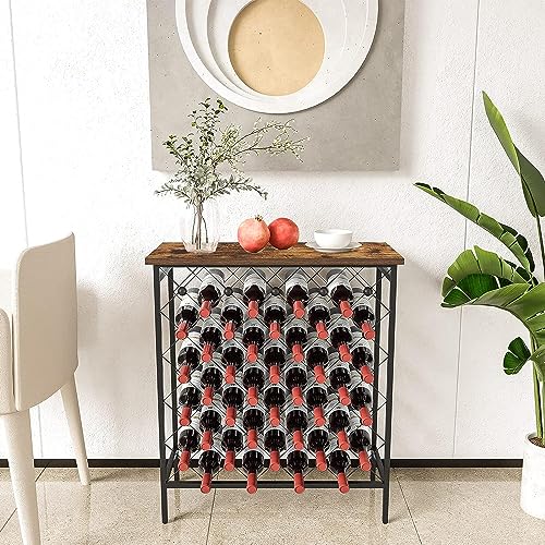 Honiter - حامل مشروبات قائم بذاته من هونيتر مع سطح طاولة خشبي - يحمل 40 زجاجة، حامل معدني لتخزين المشروبات مع طاولة خشبية، رف عرض للمطبخ والبار وغرفة الطعام والقبو والمخزن