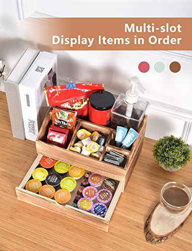 - إصدار مطور بسعة أكبر: بالنسبة لشاربي القهوة والشاي، يجب أن يكون لديهم الكثير من أكياس الشاي وزجاجة ضخ الشراب وعبوات السكر والعسل والتوابل والمناديل وكبسولات القهوة. يمكن أن يصبح ركن القهوة فوضوي، ولكن باستخدام صندوق القهوة المحمول هذا يمكنك وضع الأشياء المفضلة التي تشربها بشكل متكرر ووضع الباقي في الدرج، ما يساعدك على الحفاظ على تنظيم ركن القهوة.