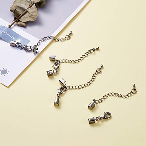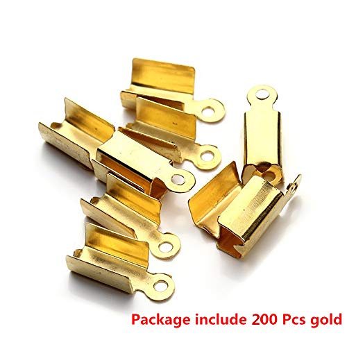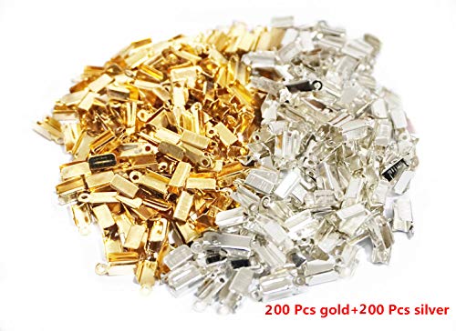 Honkoolly - طقم أطراف ربط معدنية ومشابك إغلاق لأطراف الحبال لتصنيع مجوهرات جلدية يدوية مثل السلاسل والأساور، مجموعة من 400 قطعة، من هونكوللي، 11 × 4.3 ملم، فضي وذهبي