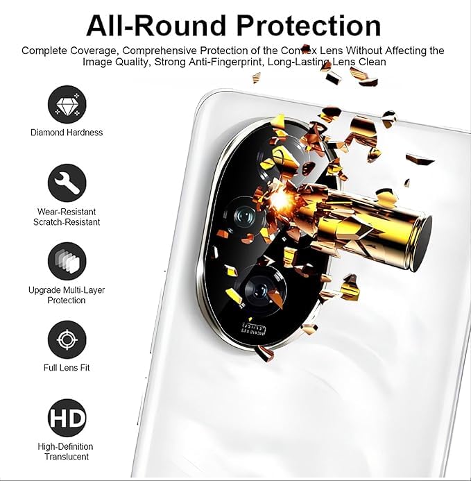 - واقي عدسة كاميرا من الزجاج المقوى شفاف وعالي الدقة HD بتغطية كاملة وتصميم مضاد للخدش للحماية من السقوط لموبايل هونر 200 شبكة الجيل الخامس 5G - لون أسود.