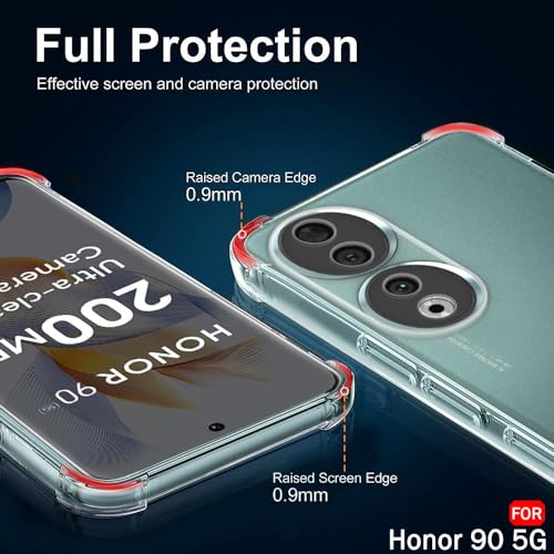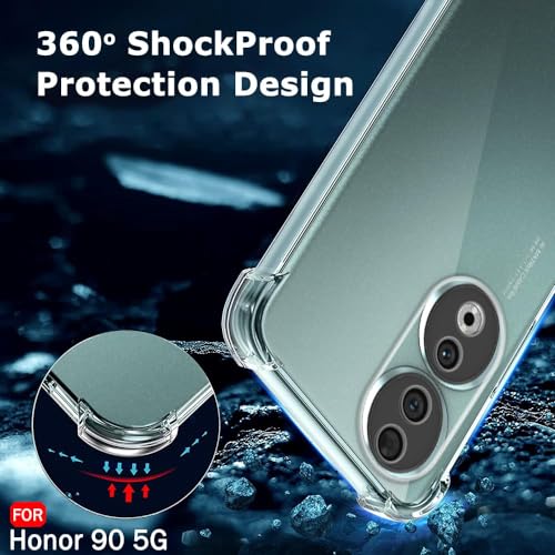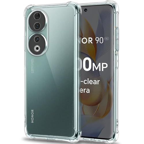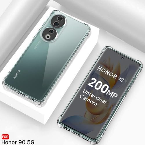 Generic - ( Honor 90 5G جراب خلفي شفاف من السيليكون والبولي يوريثين الحراري المرن الناعم والمطاط المقاوم للصدمات بزوايا مضادة لموبايل هواوي هونر شبكة الجيل الخامس