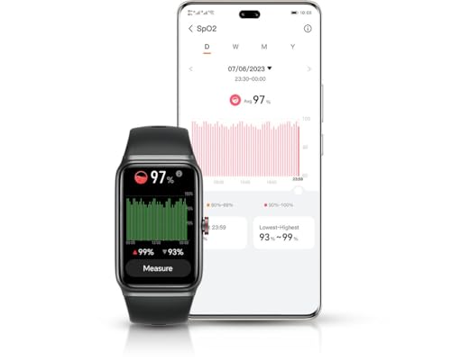 HONOR CHOICE - ساعة موسين باند من هونر تشويس بشاشة اموليد كبيرة مقاس 1.64 انش وبطارية تدوم 12 يومًا ومراقبة الصحة طوال اليوم، لون اسود