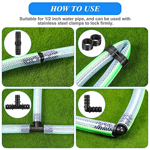 Honoson - مجموعة انابيب لتركيب نظام الري بالتقطير بحجم 1/2 بوصة و8 اقترانات و8 موصلات تي و8 زوايا و8 اطراف اغلاق و8 اطراف مغلقة، قابس بلاستيكي 8، محول صنبور، مشبك من الستانلس ستيل