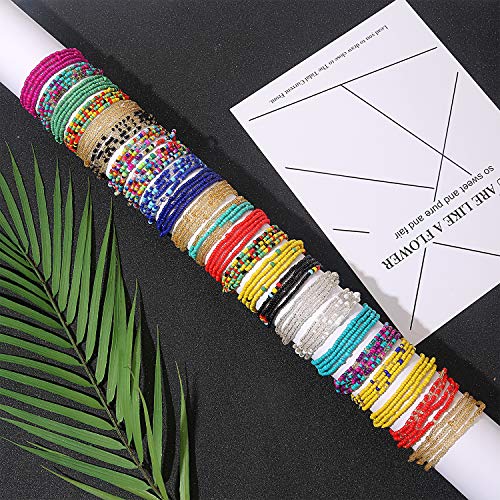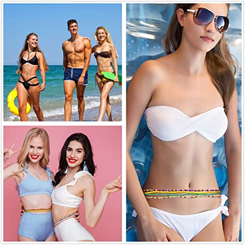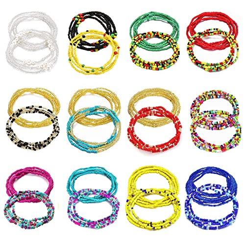 Honsny - هونسني 24 قطعة من سلاسل الخصر من الخرز للنساء، سلسلة جسم صيفية ملونة مرنة مطرزة للخصر للخسارة، سلسلة خصر افريقية، مجموعة مجوهرات للنساء، بلاستيك،