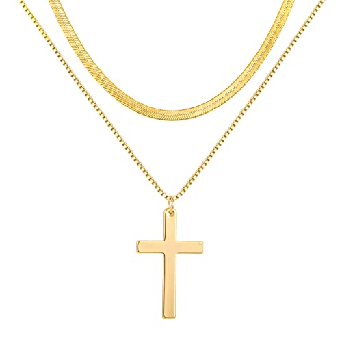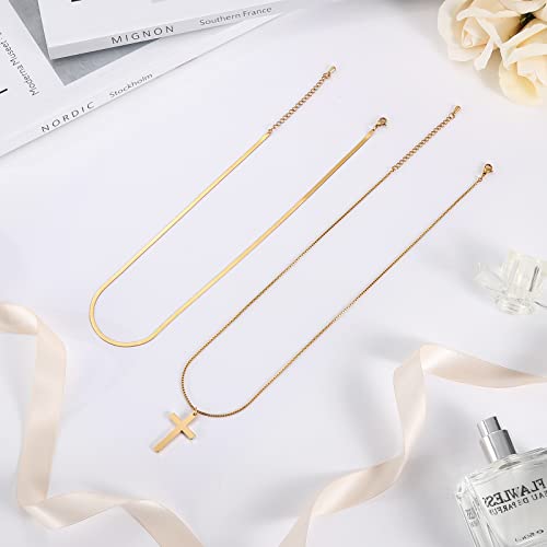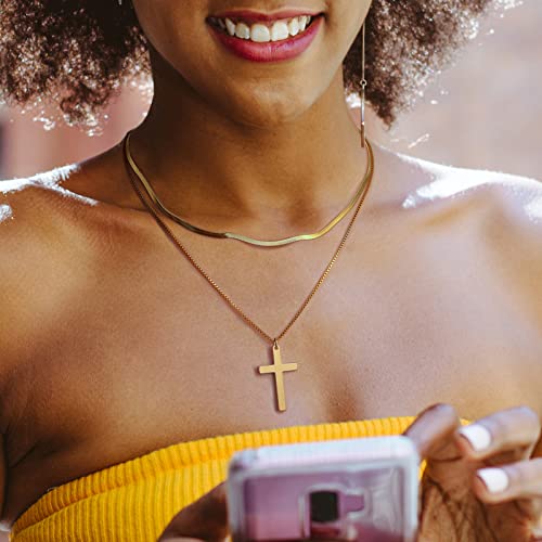 HooAMI - سلسلة ضيقة متعرجة انيقة بسيطة مطلية بالذهب عيار 18 قيراط بدلاية من الزركونيا المكعب/صليب/شريط هدايا عصرية للنساء والبنات لون ذهبي, ستانلس ستيل, بدون أحجار كريمة