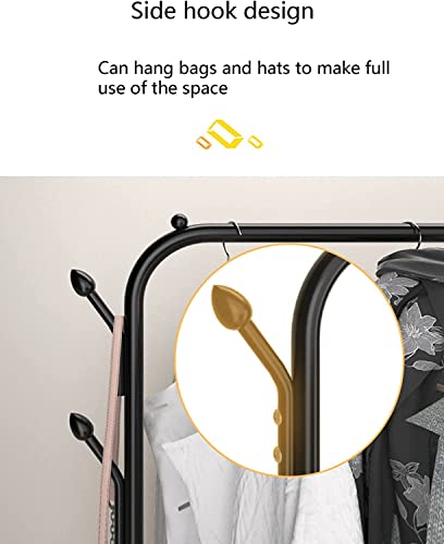 HOOBRO - هوو برو رف ملابس فردي معدني متعدد الاغراض مع قضيب علوي ورف تخزين سفلي مع خطافات، حامل ملابس شديد التحمل ومنظم خزانة (اسود / 150 × 110 × 40 سم) (ابيض) قطعة واحدة