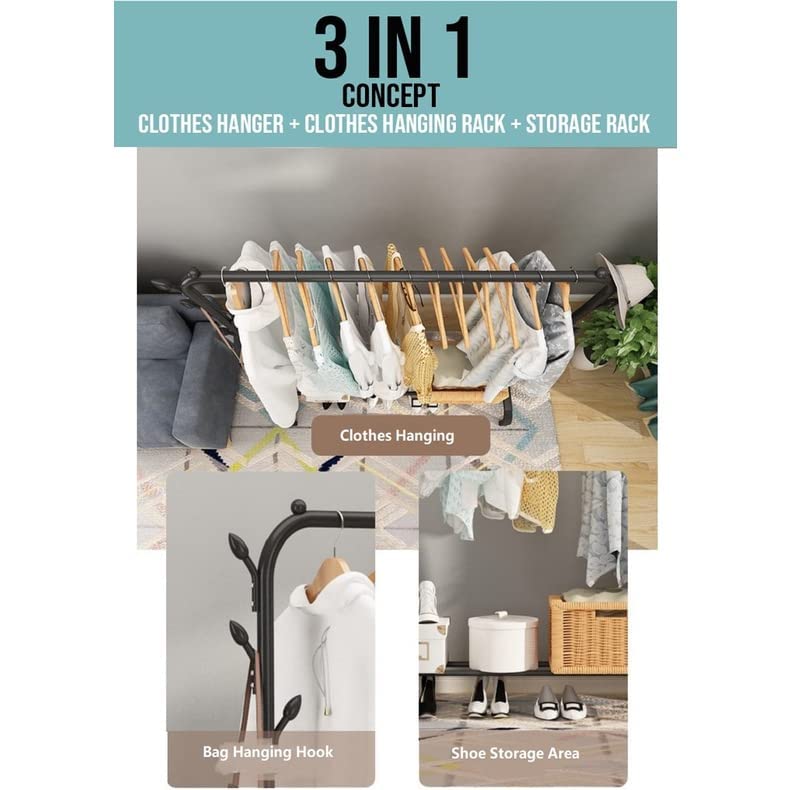 - ️تخزين للمساحات الصغيرة -- يمنح الرف السفلي رف الملابس مزيدًا من القوة والثبات، كما يوفر مساحة بعيدة عن الأرض للأحذية والأحذية ذات الرقبة الطويلة والسلال والحقائب والمظلات
