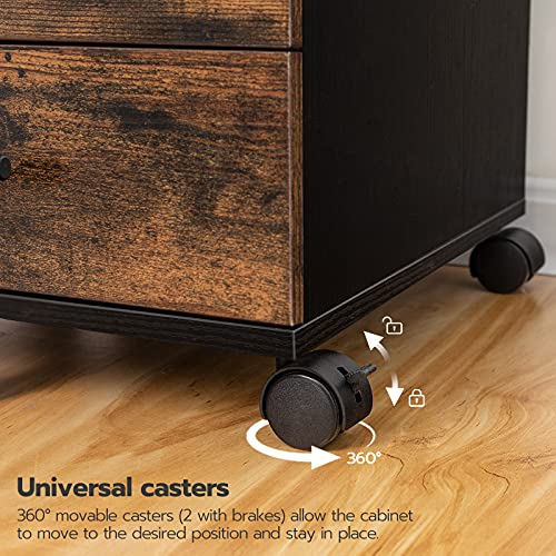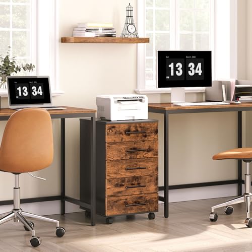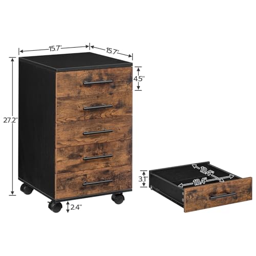 HOOBRO - حافظة مستندات مكونة من 5 أدراج من هووبرو، دولاب مكتبي، دولاب مستندات مع أدراج، دولاب خشبي مع عجلات، دولاب تخزين للمكياج، للمنزل والمكتب والدراسة، سهل التجميع، بني ريفي، رقم الموديل BF05WJ01