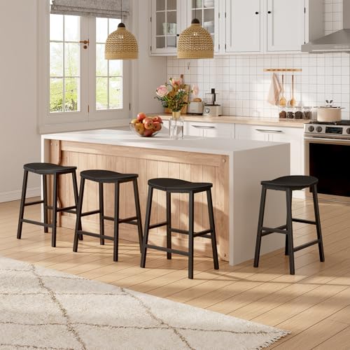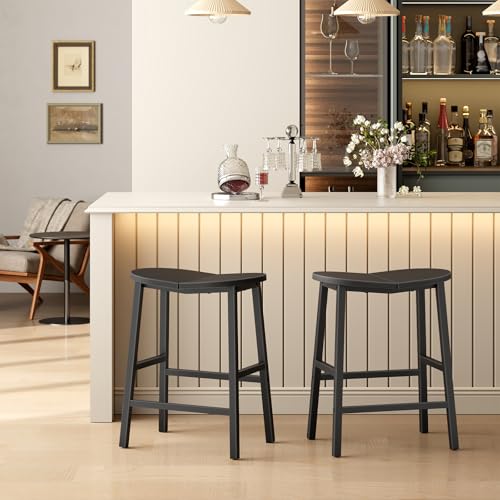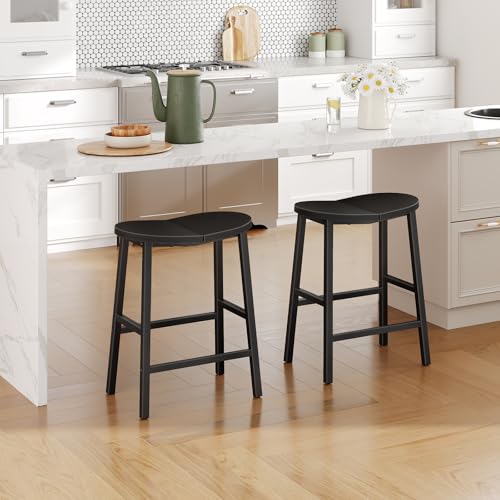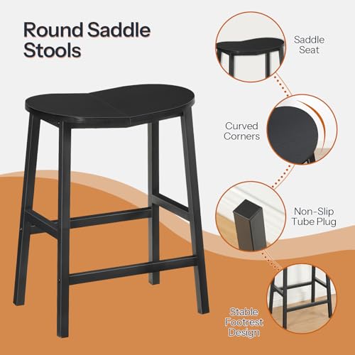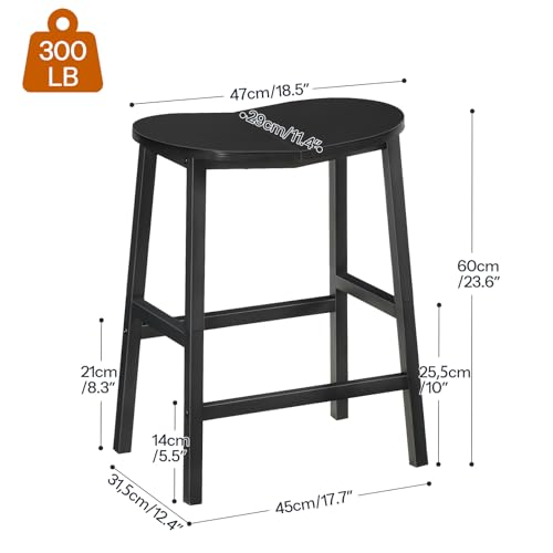 HOOBRO - كراسي مرتفعة لطاولة المطبخ، كراسي بار بارتفاع المنضدة، كراسي مطبخ مع مساند للقدمين لغرفة الطعام مقاس 60 سم بلون أسود، من 2 قطعة موديل BB57MDP201 من هوو برو