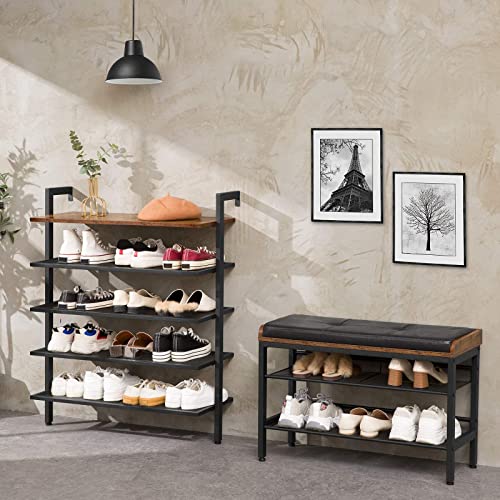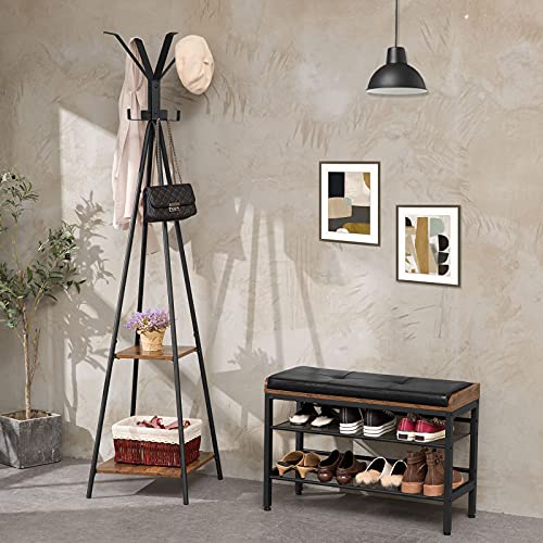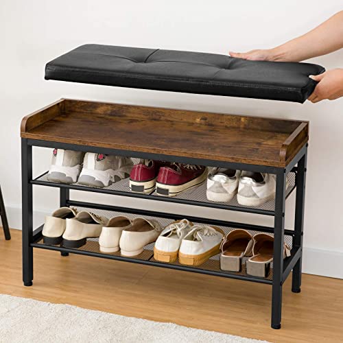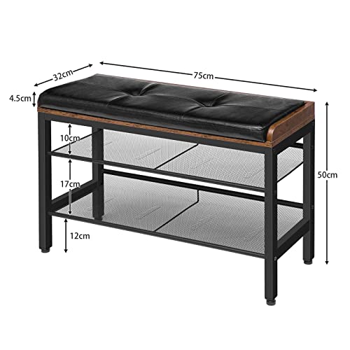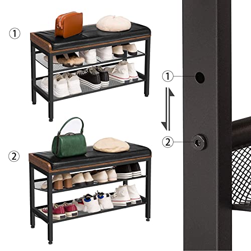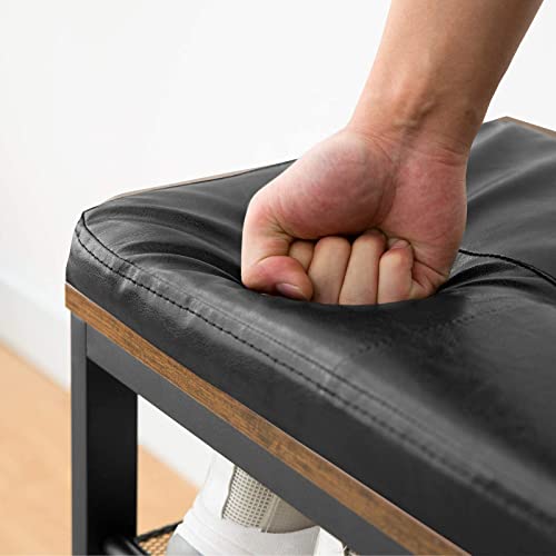 HOOBRO - مقعد احذية من الجلد الصناعي من هوبرو، مبطن قابل للازالة، مقعد تخزين مبطن مع رفين شبكيين قابلين للتعديل، اسود، مريح، للرواق، لغرفة المعيشة EBF21HX01