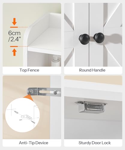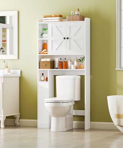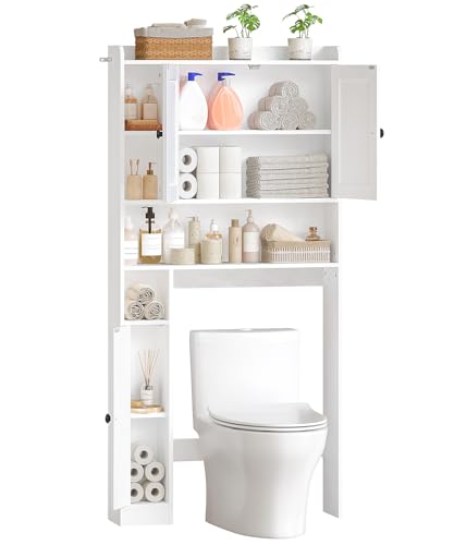 HOOBRO - وحدة تخزين فوق التواليت، منظم تخزين الحمام الريفي مع أبواب، رف تواليت خشبي مع أرفف قابلة للتعديل، موفر للمساحة للحمام التواليت والغسيل من هوو برو، لون أبيض، موديل WT80TS01