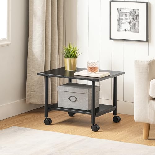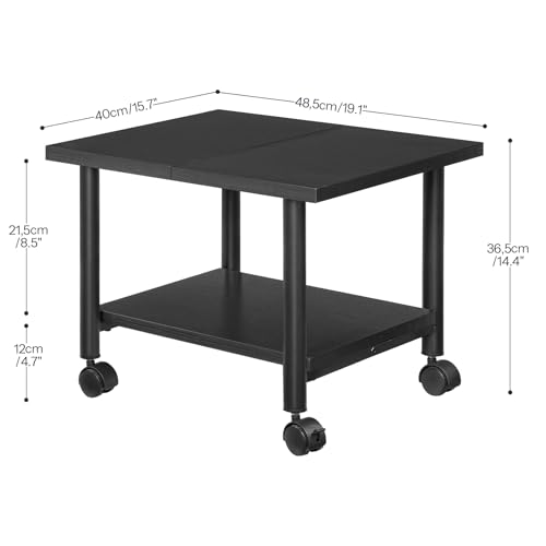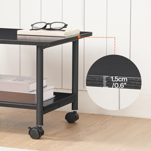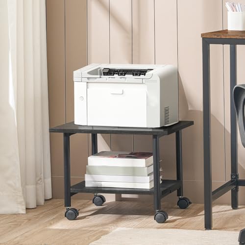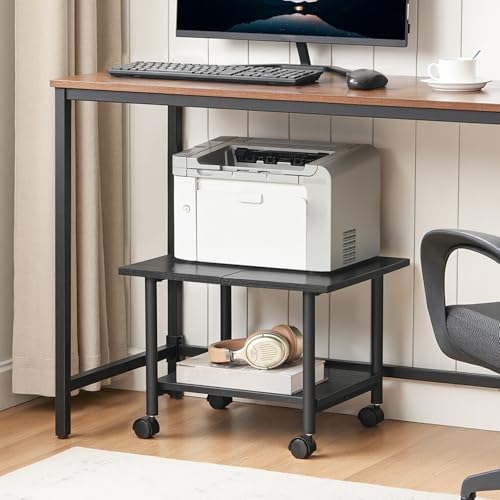 HOOBRO - هوو برو حامل طابعة، عربة طابعة صناعية بطبقتين تحت المكتب مع رف، رف تخزين متنقل شديد التحمل على عجلات للمنزل والمكتب، اسود BB02PS01G1