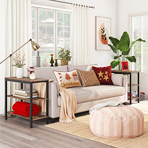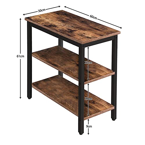 HOOBRO - طاولة جانبية للكنبة من 3 طبقات هووبرو بنمط صناعي لغرفة المعيشة وغرفة النوم والمطبخ سهلة التجميع إطار معدني بني ريفي طراز EBF14BZ01