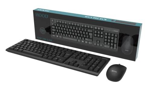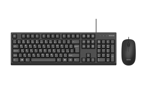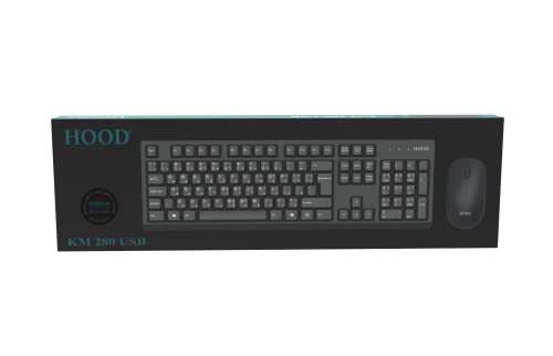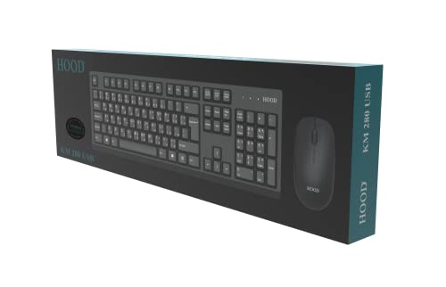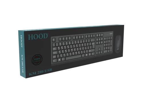 HOOD - كيبورد وماوس بمنفذ USB من هود، موديل KM280 - 1000 نقطة لكل بوصة / سنة، أسود