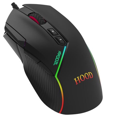HOOD. - ماوس ألعاب M8800 GX مزود بمستشعر بصري بدقة 6400DPI و7 أزرار قابلة للبرمجة بتصميم مريح وإضاءة ار جي بي لألعاب FPS وMOBA من هود