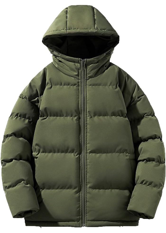 Generic - جاكيت مبطن شتوي بغطاء للرأس وسوستة كاملة، أخضر زيتوني