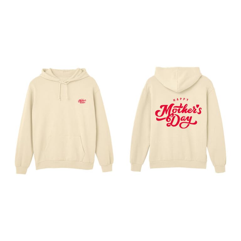 Generic - سويت شيرت بغطاء للرأس لعيد الأم، لون بيج B، مقاس ميديوم