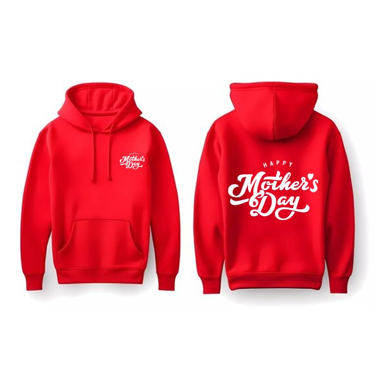Generic - سويت شيرت بغطاء للرأس مطبوع عليه Happy Mother's Day باللون الاحمر من الامام والخلف، بلوفر مع جيب مقاس (5XL)