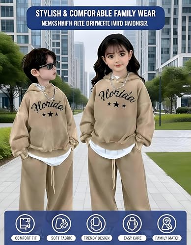 Generic - طقم هودي - طقم هودي وسروال برسومات بروكلين للاولاد باللون الاخضر الزيتوني، ملابس الشارع كاجوال مع مزيج قطني مريح، قماش محبوك جيد التهوية، سهل العناية، مثالي للعب اليومي