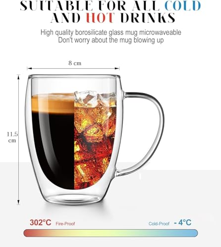 - تصميم فريد من نوعه مزدوج الجدار: حافظ على أصابعك آمنة وباردة مع الأواني الزجاجية المقاومة للحرارة والمزدوجة الجدار، حتى تبقى المشروبات دافئة دون أن تحترق! السطح الخارجي يشعر دائمًا بالراحة في اليد.
