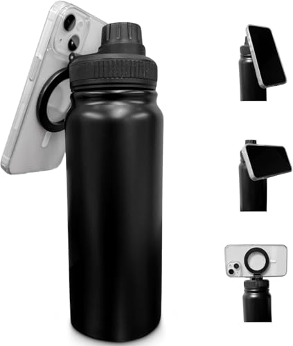 - [عملية للاستخدام اليومي] - إنها زجاجة مياه معزولة عالية الجودة مع حامل مغناطيسي يحمل هاتفك بأمان. استمتع براحة تصميمها الشامل الذي يعيد تعريف تعدد المهام. مثالي للسفر أو التصوير أو متابعة التمارين والطهي وإجراء مكالمات الفيديو والتنقل بنظام تحديد المواقع العالمي وغير ذلك الكثير!