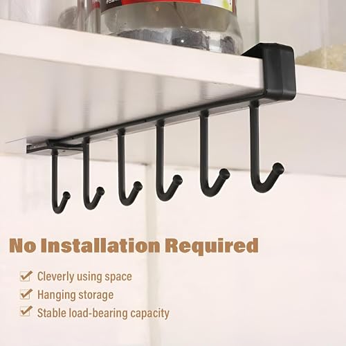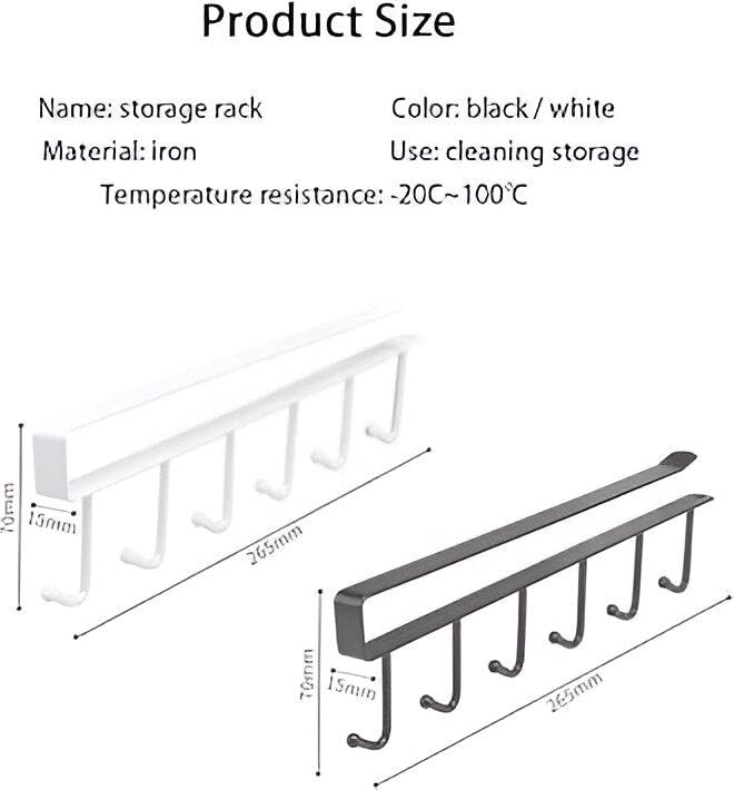 Generic - منظم خطافات - حامل اكواب قهوة انيق بـ 6 خطافات لرفوف المطبخ والخزائن، مثالي لتخزين الاشياء المتنوعة وزيادة المساحة (قطعة واحدة من اللون الظاهر)