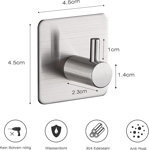 Generic - خطافات ذاتية اللصق من 4 قطع من خطافات المناشف بدون ثقب، حامل منشفة من الستانلس ستيل، خطاف حائط ذاتي اللصق، خطاف لتعليق روب الاستحمام، خطاف لاصق للمطبخ والحمام