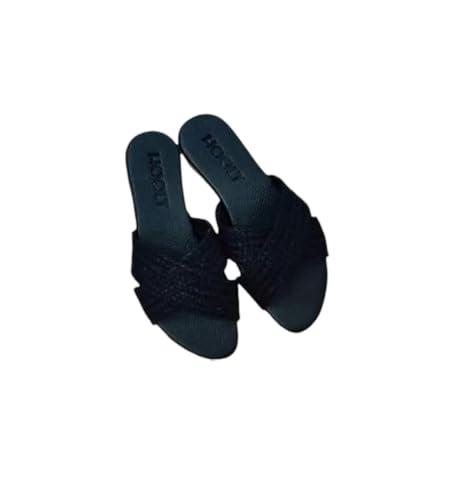 HOOLT - صندل صيفي مسطح سهل الارتداء بحزام متقاطع منسوج من هولت، الوان متعددة، متوفر بمقاسات 37-41، حذاء مريح