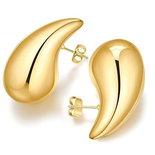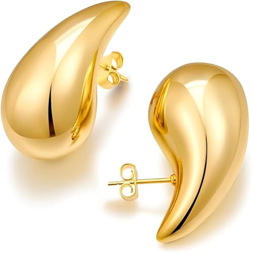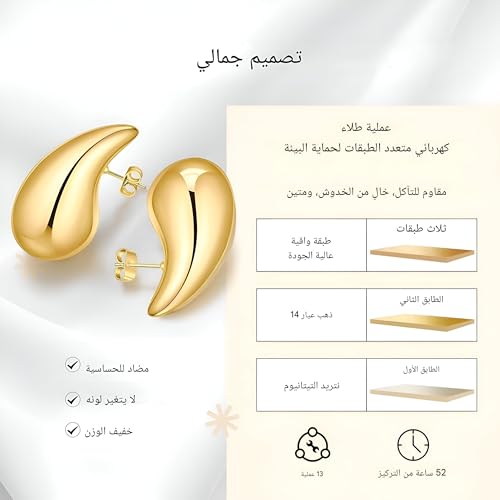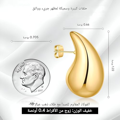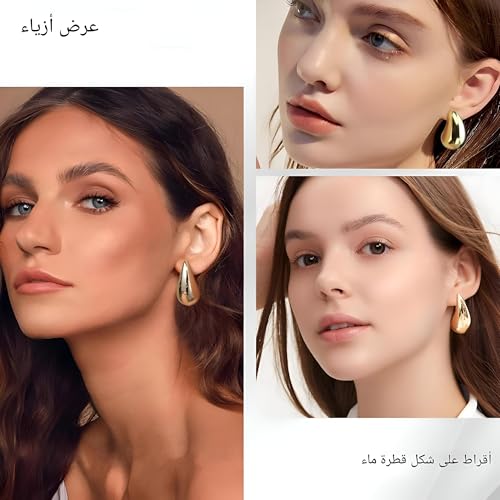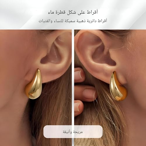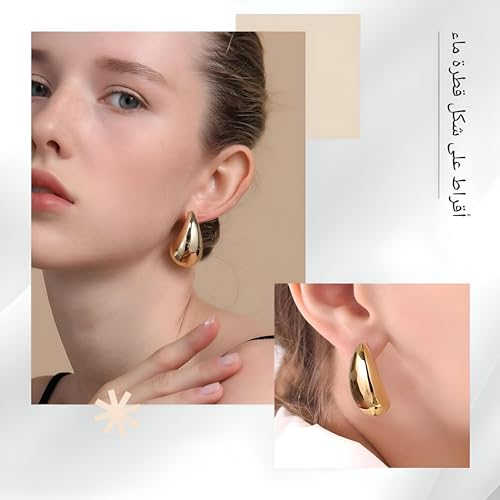 Generic - اقراط حلقية - تصميم ذهبي مكتنز انيق مع عناصر قطرة دمعة للنساء، خفيفة الوزن ولا تسبب الحساسية لراحة طوال اليوم ومظهر عصري