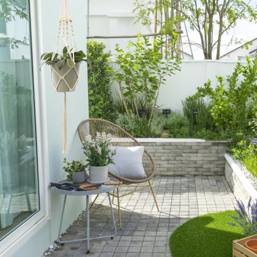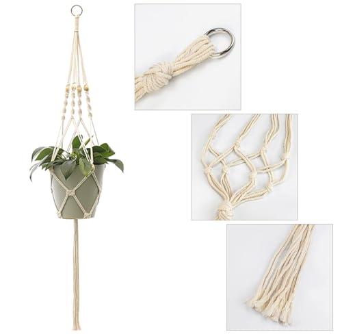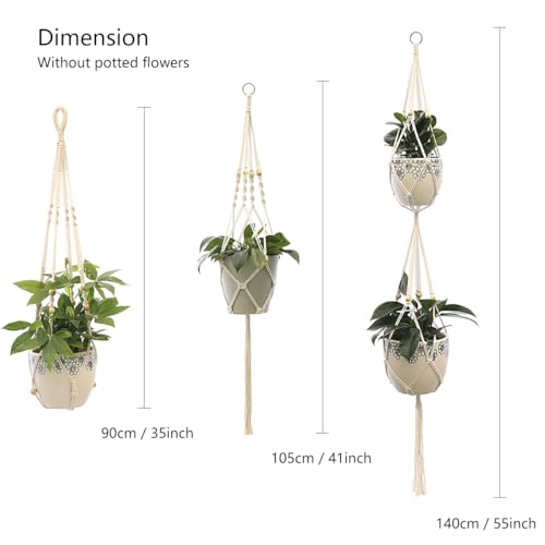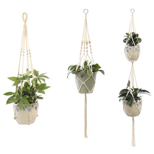 HOOTO - حامل تعليق نباتات متسلقة من المكرمية، حامل نباتات داخلي معلق، سلال معلقة يدوية الصنع من المكرمية لأوعية النباتات الصغيرة، ديكور منزلي بوهيمي من هووتو، عبوة من 3 قطع، 3 أحجام 90 سم/1.05 م/1.40 م (بيج)