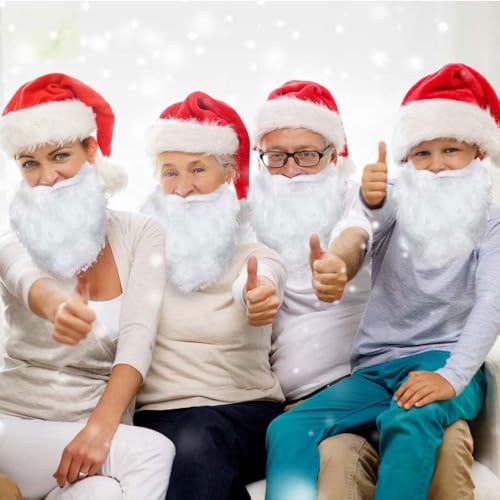 HOOTO - 3 قطع لحية سانتا كلوز بيضاء مزيفة من اكسسوارات اداء حفلات الكريسماس للمراهقين والبالغين