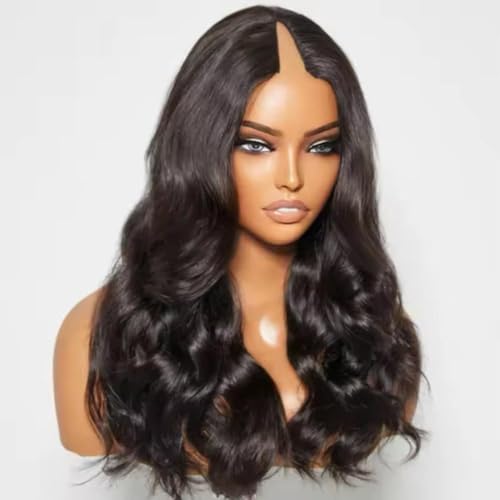 HOOTO - مجموعة وصلات شعر قابلة للتثبيت بالمشبك شعر صناعي طويل مموج على شكل U قابل للتعديل مع 4 مشابك آمنة للنساء من هوتو، لون أسود، طول 50 سم