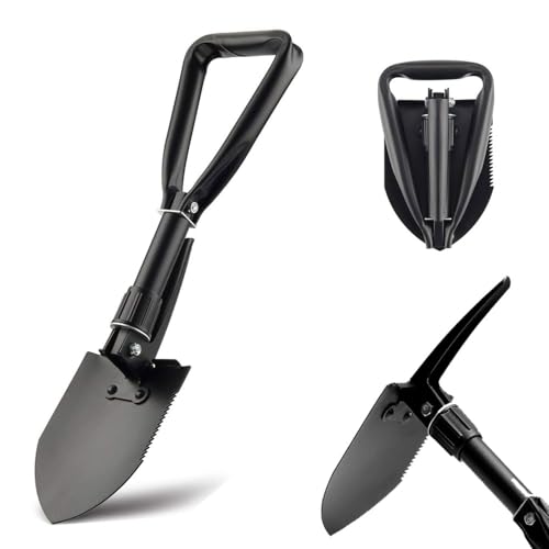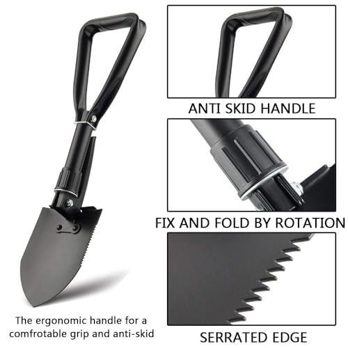 HOOTO - مجرفة صغيرة قابلة للطي، مجرفة عسكرية من الصلب الكربوني شديدة التحمل، مجرفة نجاة تكتيكية محمولة خفيفة الوزن وقابلة للطي للتخييم والبستنة وخنادق الخنادق وحالات الطوارئ في السيارة من هوتو